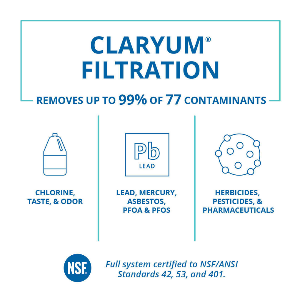 Az Aquasana Claryum® AQ-5200 vízszűrő azzal a képességgel rendelkezik, hogy a csaptelepi vizet azonnal tiszta és jóízű vízzé változtatja. Ezen szűrő segítségével az egész család számára megbízható vizet biztosíthatsz úgy a napi hidratáláshoz, mint a különböző ételek, kávé vagy tea elkészítéséhez.